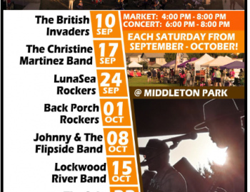 Enjoy live concerts and a farmer's market each Saturday from September to October. The event is held at the Middleton...