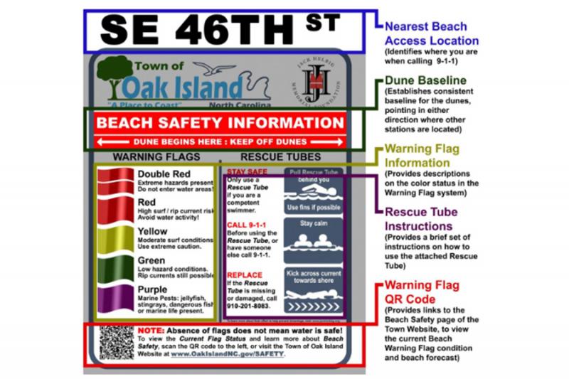 All 65 beach access locations on the island have been equipped with Water Safety Stations. You will see these two informational and useful components at each one.